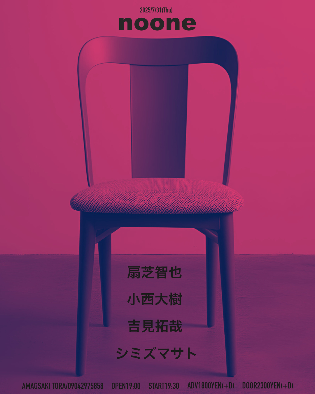 2025 7/31thu[noone] 2025.07.31 act… 扇芝智也 小西大樹 シミズマサト 吉見拓哉 OPEN 19:00 START 19:30 Adv.¥1800+1D) Door.¥2300(+1D)