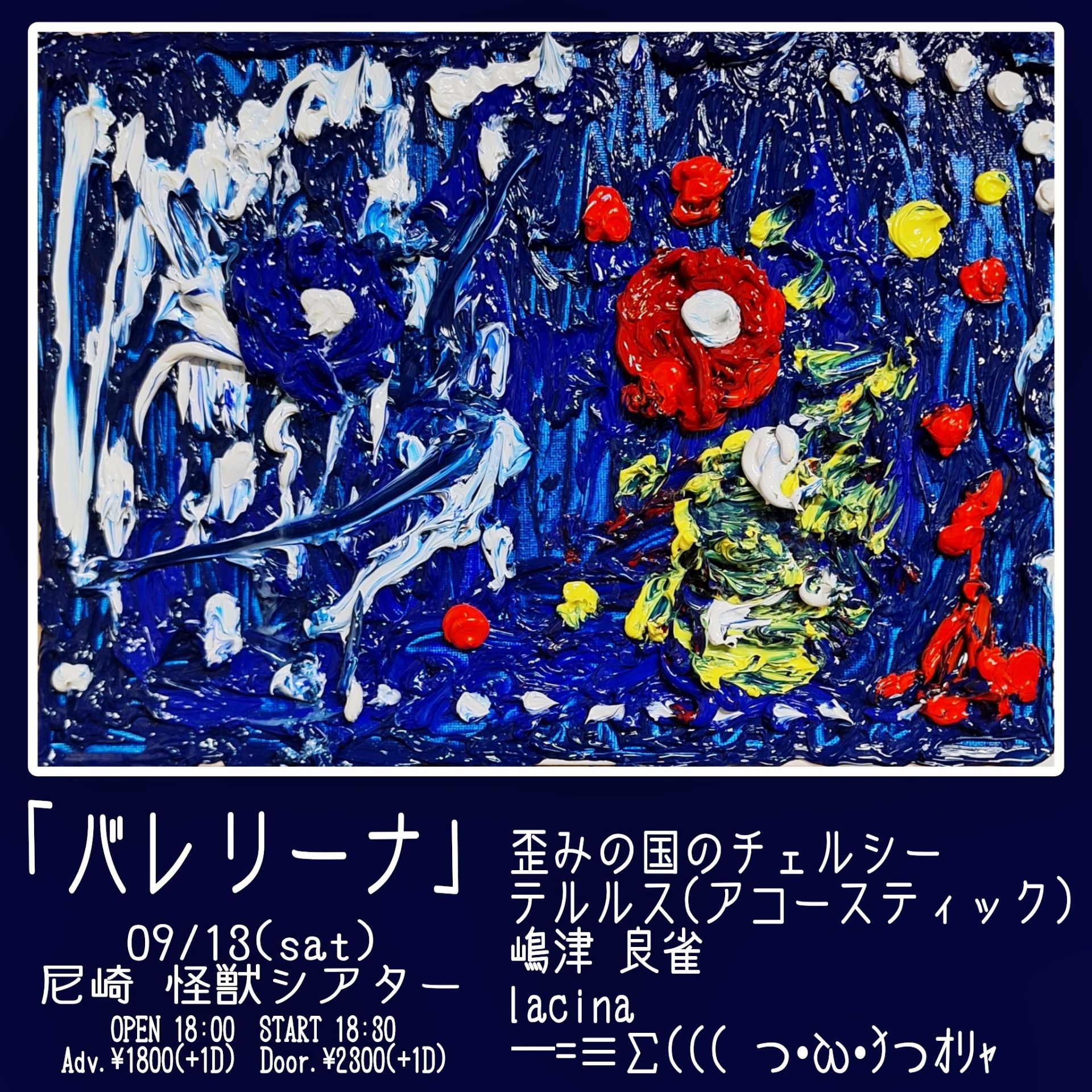 2025 9/13(sat)[バレリーナ]※怪獣シアター公演 2025.09.13 act… 歪みの国のチェルシー テルルス(アコースティック) 嶋津 良雀 lacina ─=≡Σ((( つ•̀ω•́)つオリャ OPEN 18:00 START 18:30 Adv.¥1800(+1D) Door.¥2300(+1D)
