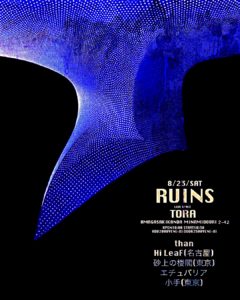 2025 8/23sat[RUINS] 2025.08.232025.09.02 act… than 砂上の楼閣(東京) Hi LeaF(名古屋) 小手(東京) エチュバリア OPEN 18:00 START 18:30 Adv.¥2000(+1D) Door.¥2500(+1D)