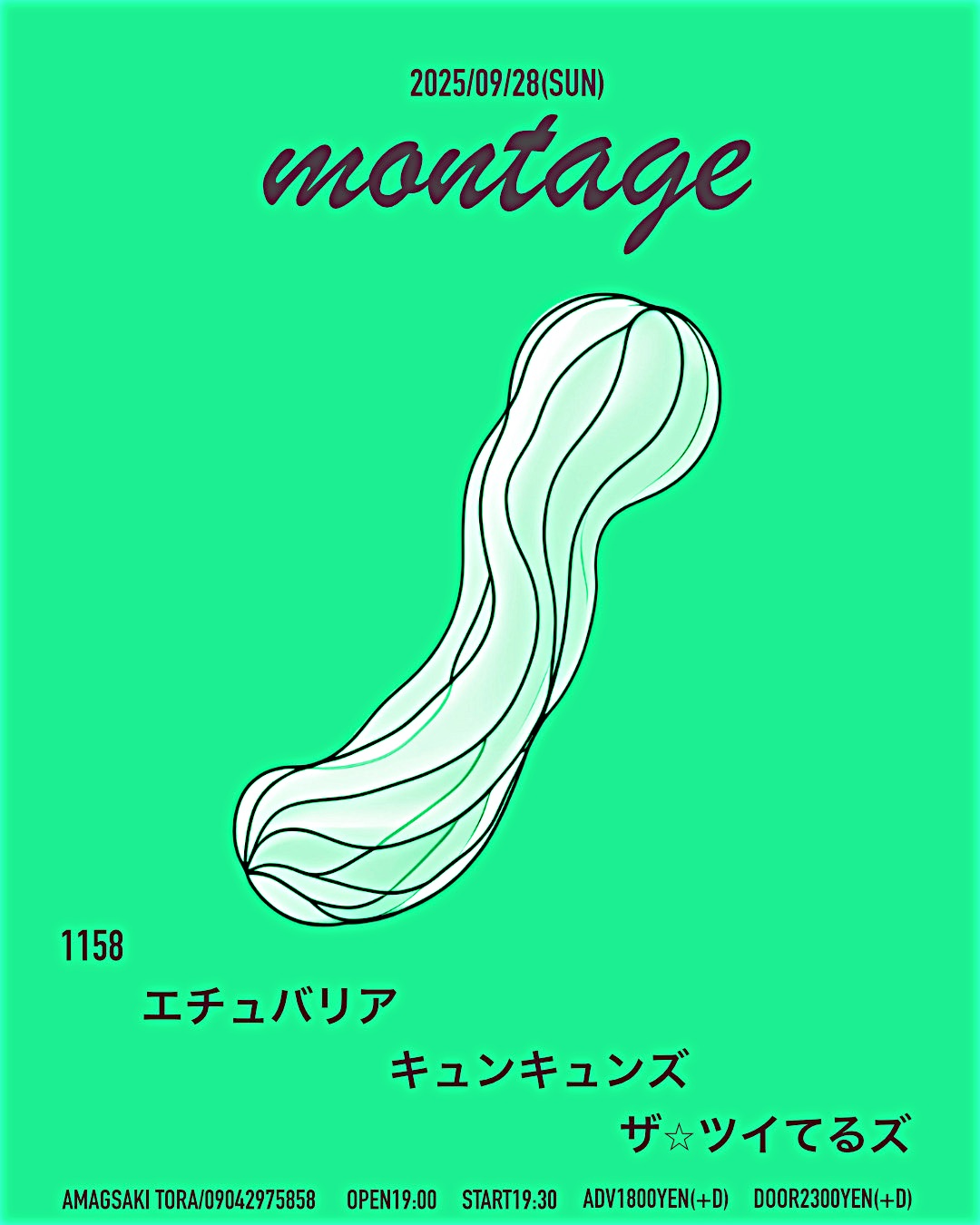 2025 9/28sun[montage] 2025.09.28 act… 1158 エチュバリア キュンキュンズ ザ⭐︎ツイてるズ and more … OPEN 19:00 START 19:30 Adv.¥1800(+1D) Door.¥2300(+1D)
