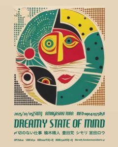 2025 10/5sun[DREAMY STATE OF MIND] 2025.10.05 act… 〆切のない仕事 楠木晴人 豊田梵 シモリ 宮田ロウ OPEN 18:00 START 18:30 Adv.¥2000(+1D) Door.¥2500(+1D)