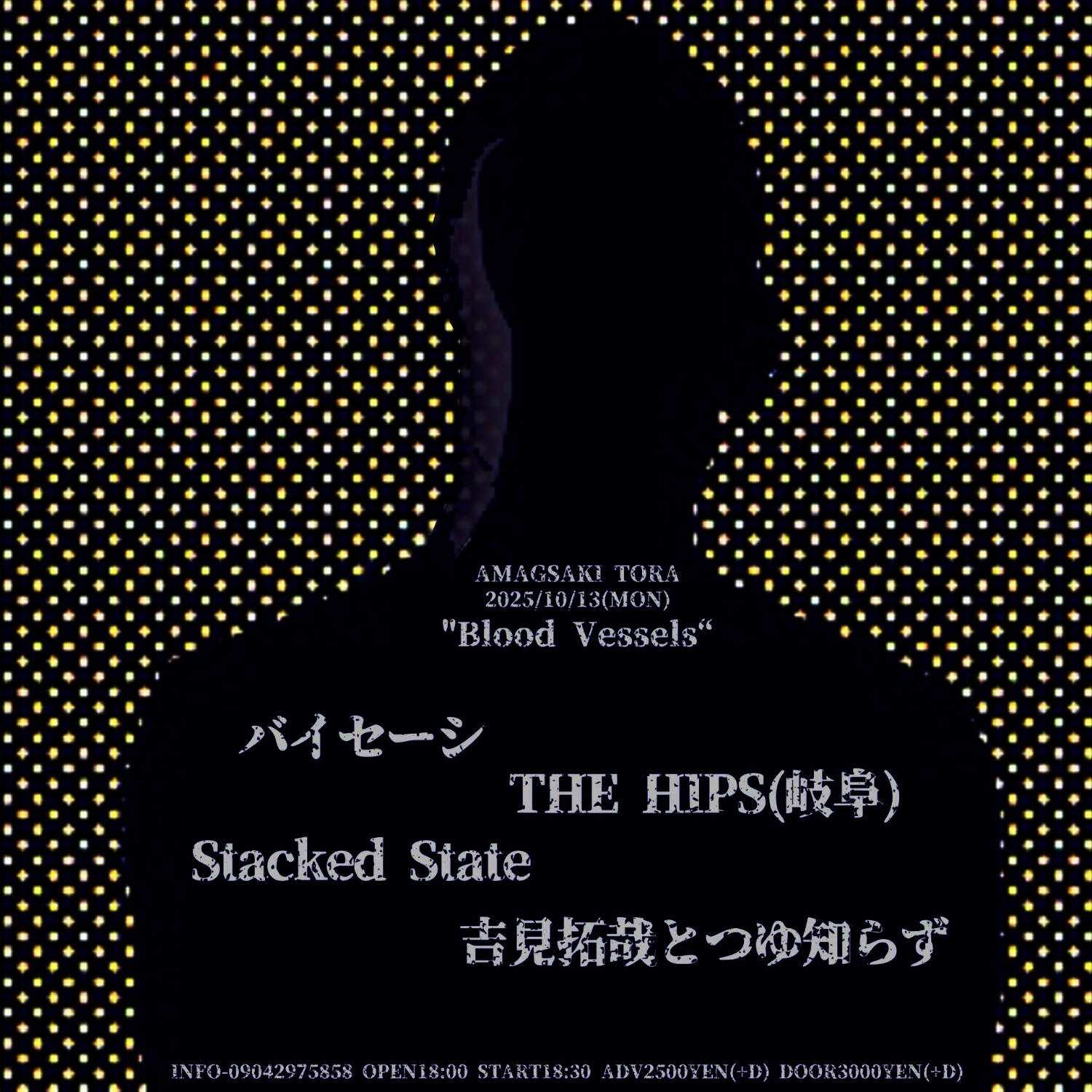 2025 10/13mon[Blood Vessels] 2025.10.132025.10.27 act… バイセーシ THE HIPS(岐阜) Stacked State 吉見拓哉とつゆ知らず and more … OPEN 18:00 START 18:30 Adv.¥2000(+1D) Door.¥2500(+1D)