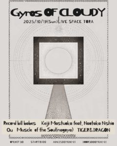 2025 10/19sun[Gyros OF CLOUDY] 2025.10.192025.10.27 act… Record bill babes Keiji Matsuoka feat. Naotaka nishio Qu Muscle of the Soul(名古屋) TIGER&DRAGON OPEN 17:30 START 18:00 Adv.¥2500(+1D) Door.¥3000(+1D)