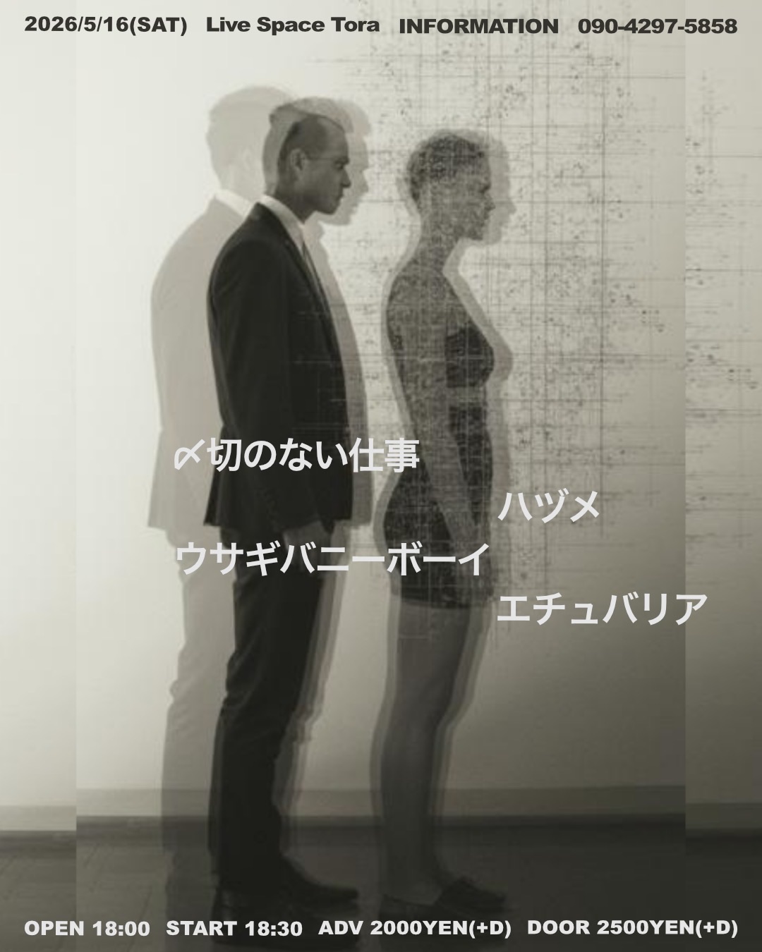 2026 5/16sat[Subject Unknown] 2026.05.16 act… ウサギバニーボーイ 〆切のない仕事 ハヅメ エチュバリア OPEN 18:00 START 18:30 Adv.¥2000(+1D) Door.¥2500(+1D)