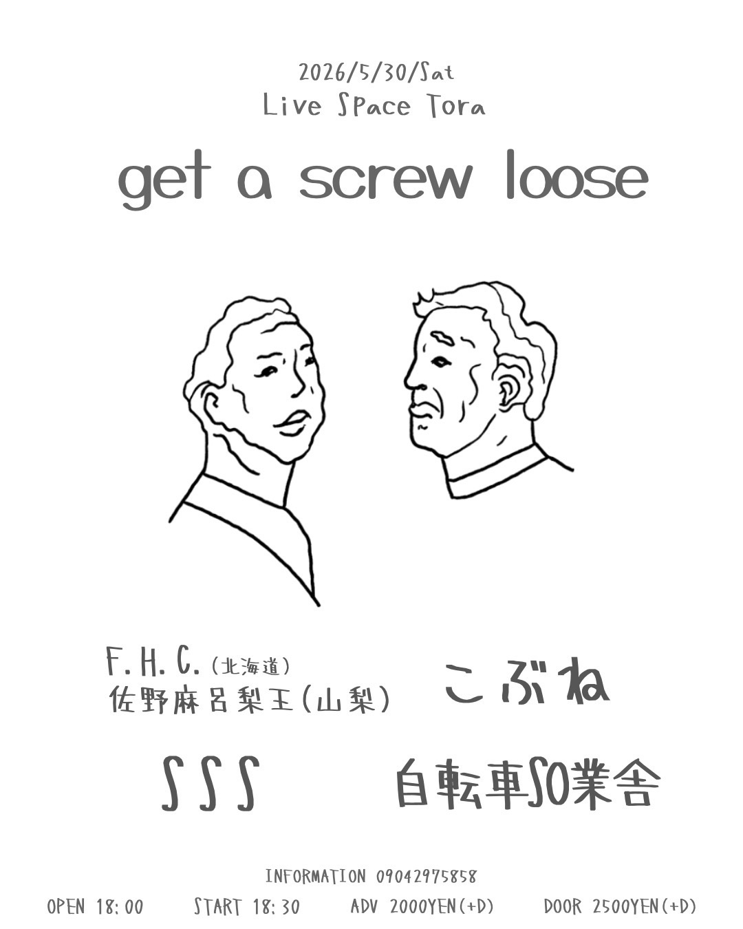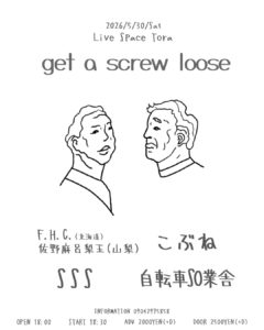 2026 5/30sat[get a scraw loose] 2026.05.30 act… F.H.C.(北海道) with 佐野麻呂梨王(山梨) こぶね SSS 自転車SO業舎 and more … OPEN 18:00 START 18:30 Adv.¥2000(+1D) Door.¥2500(+1D)