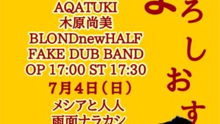 act...夕方の豊野AbsoluteフラフープスTKRKNbunchoOPEN 16:00START 16:30Adv.¥1800(+1D)Door.¥2300(+1D)