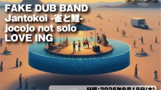 act...FAKE DUB BANDJantokoi -雀と鯉-jocojo not soloLOVE INGOPEN 19:00START 19:20Adv.¥2000(+1D)Door.¥2500(+1D)